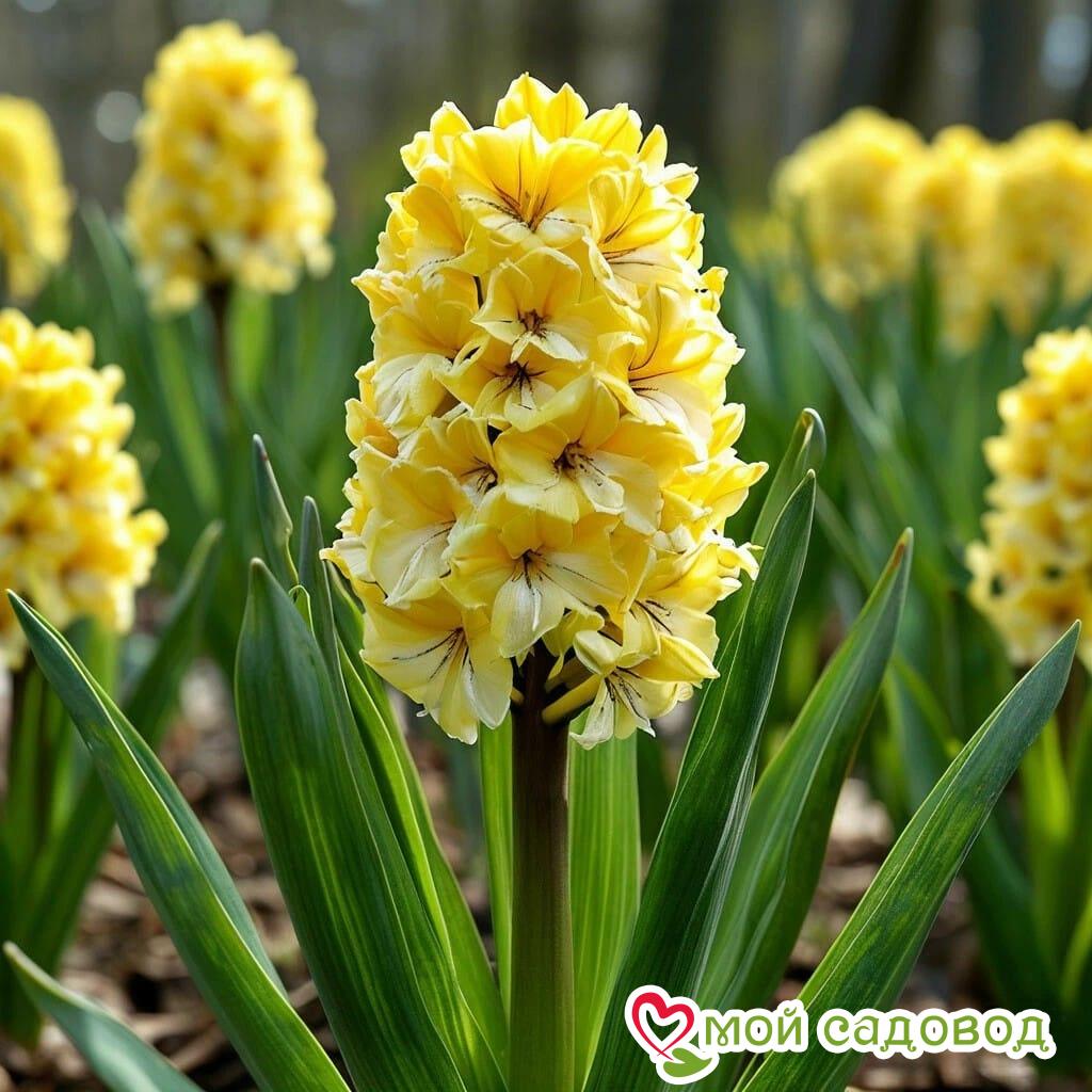 Гиацинт «Кримсон Тайфун»: белоснежная буря с солнечным сердцем в вашем саду